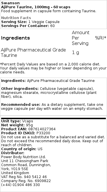 AjiPure Taurine, 1000mg – 60 vcaps