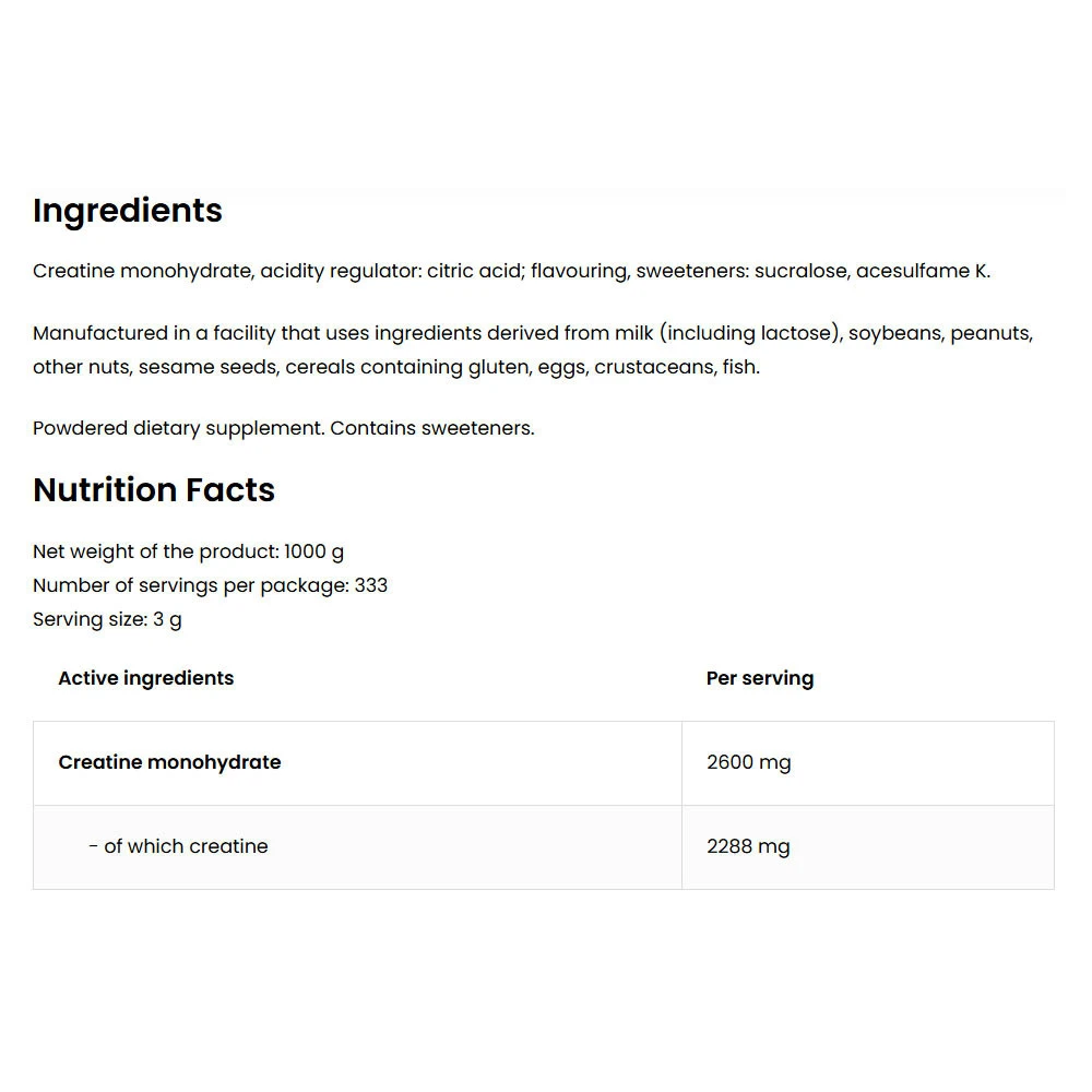 Ingrédients principaux : Créatine monohydrate, arôme naturel de pastèque.