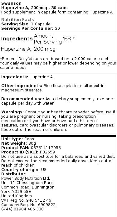 Avec les années qui passent, nous pouvons commencer à remarquer que les choses deviennent un peu « floues ». Heureusement, vous ne devez pas simplement accepter que votre esprit ne soit plus aussi vif qu’avant. L’Huperzine A de Swanson Maximum Strength est bénéfique pour ceux qui veulent rester vifs à tout âge. L’huperzine A est un extrait de l’asclépiade chinoise huperzia serrata et le sujet passionnant de la recherche en cours qui étudie son potentiel pour soutenir les fonctions cognitives et la mémoire. Notre dosage d’huperzine A se présente sous forme de gélules de 200 mcg de puissance maximale pour vous donner quatre fois plus de puissance pour nourrir votre cerveau. Découvrez ce que des clients comme vous ont à dire en lisant nos avis sur l’huperzine A.