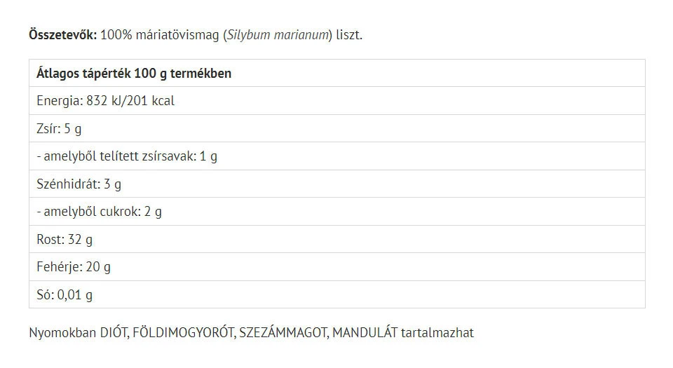 100% graines de chardon-Marie. Sans additifs ni conservateurs, ce produit est une excellente source d’ingrédients purs et non modifiés.