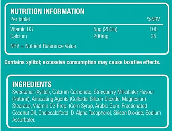 Soutien osseux Super Stars de Natures Aid – Saveur Milkshake à la fraise (60 comprimés à croquer)
