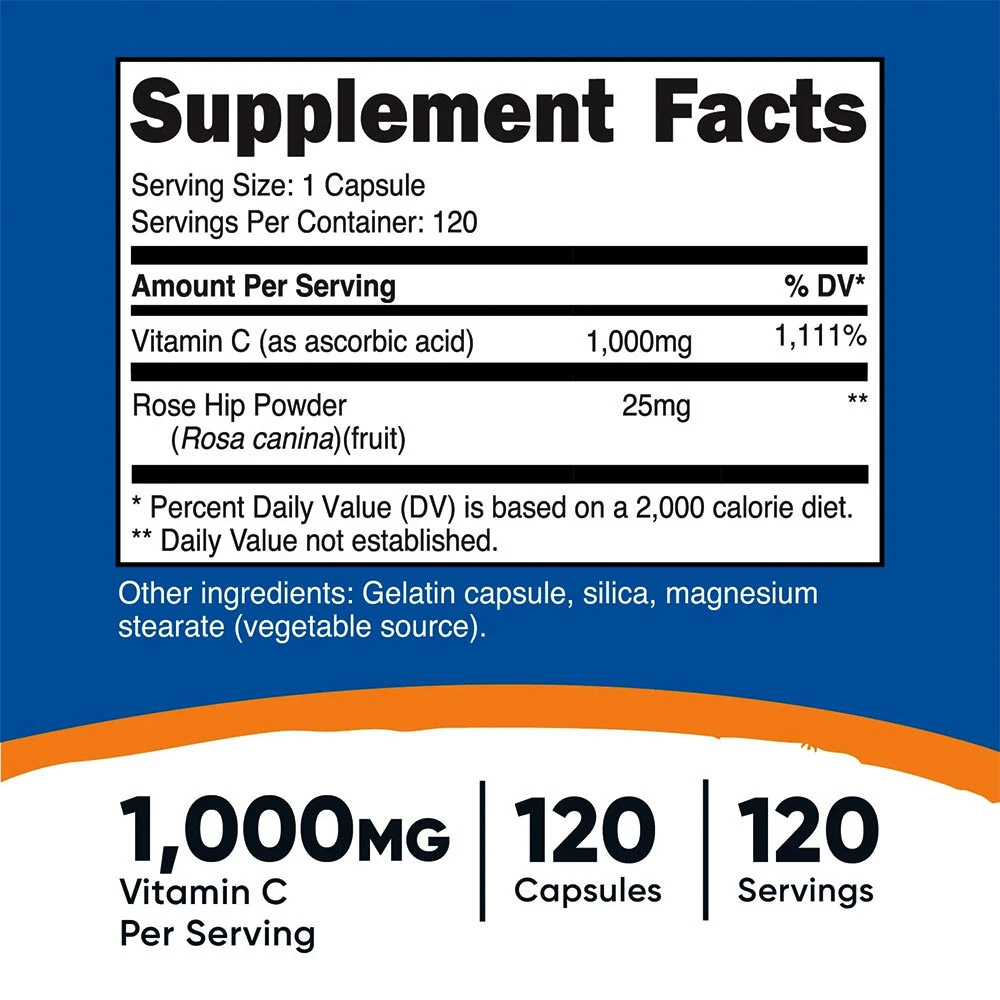 Nutricost Vitamin C with Rose Hips Capsules (120 Capsules)