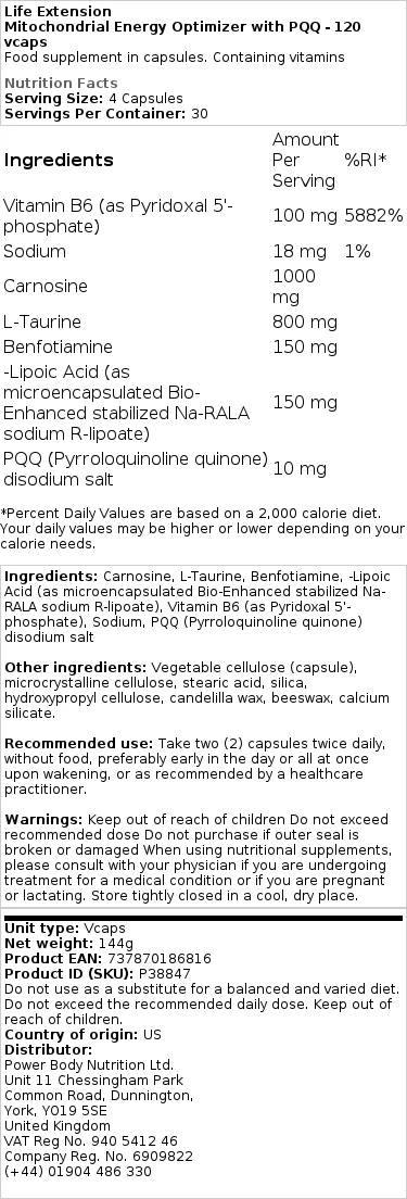 Cette nouvelle formule prend de la PQQ (pyrroloquinoline quinone) et la combine avec de la carnosine, de l’acide r-lipoïque, de la taurine et plus encore pour encourager une fonction mitochondriale saine, inhiber la glycation cellulaire, surcharger la production d’énergie cellulaire et promouvoir la génération de nouvelles mitochondries.