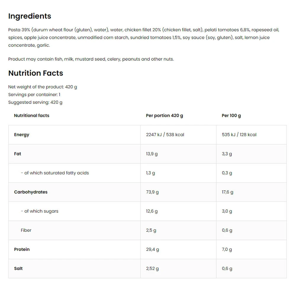 Ostrovit Chicken dish in Tuscan style sauce with pasta est un choix idéal pour tous ceux qui valorisent la facilité d’utilisation sans compromettre sur la qualité des ingrédients ou le plaisir gustatif. Un véritable atout pour un mode de vie actif!