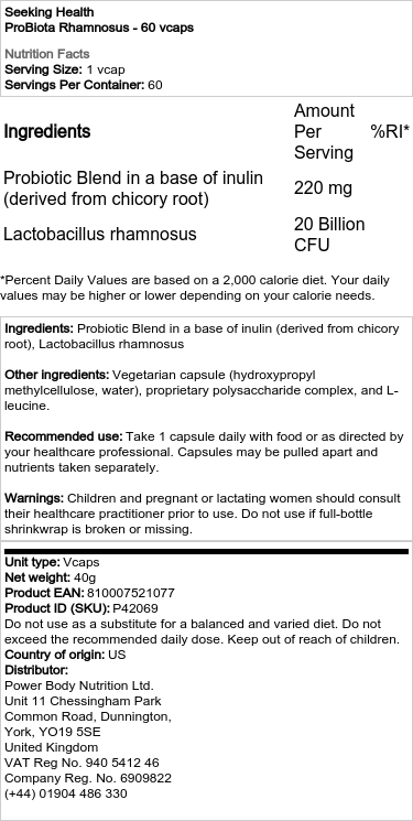 ProBiota Rhamnosus de Seeking Health fournit 20 milliards d’UFC de Lactobacillus rhamnosus, une espèce probiotique rustique et polyvalente qui a fait l’objet de recherches approfondies pour son rôle potentiel dans la santé gastro-intestinale et immunitaire. Les espèces de Lactobacillus sont des bactéries en bâtonnets à Gram positif, ne formant pas de spores. La plupart de ces espèces, dont Lactobacillus rhamnosus, ne sont pas indigènes au tube digestif humain, mais colonisent plutôt les intestins lorsqu’elles sont consommées régulièrement. Ces probiotiques sont couramment présents dans la flore intestinale des personnes qui consomment un régime à base de plantes ou traditionnel – mais leurs populations peuvent être faibles chez ceux qui consomment un régime occidental standard composé principalement d’aliments cuits, transformés ou emballés.*