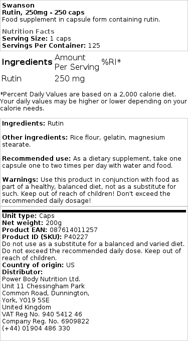 Combattez les radicaux libres avec la rutine de Swanson ! Ce puissant bioflavonoïde antioxydant travaille en synergie avec la vitamine C pour protéger vos cellules des radicaux libres. Chaque portion fournit 250 mg de rutine.