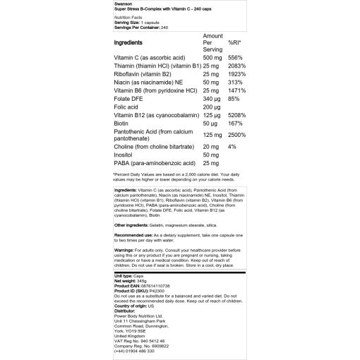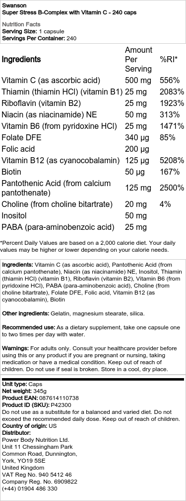 Super Stress B-Complex avec Vitamine C – 240 gélules