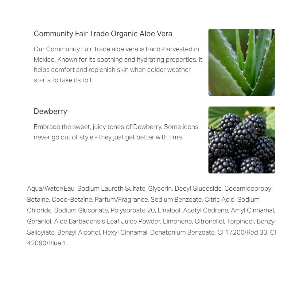 Faites le choix d’un produit respectueux de l’environnement tout en bénéficiant des plaisirs simples mais qualitatifs du quotidien grâce au Dewberry Shower Gel de The Body Shop.